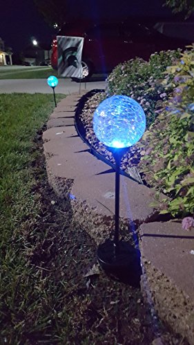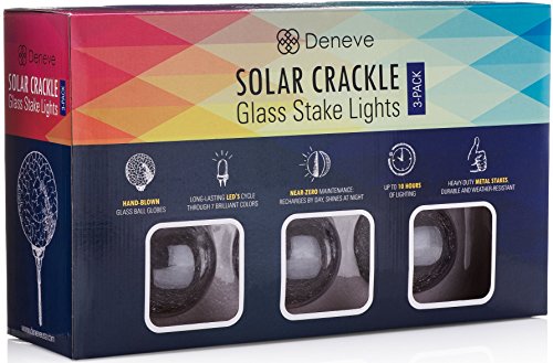 Weatherproof construction Deneve Solar-Powered Glass Ball Stake Lighting. Plant firmly into any yard space or lawn, with worry-free installation! No need for maintenance or hassle!