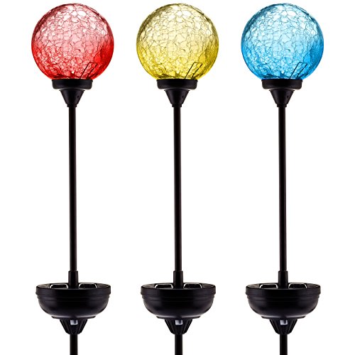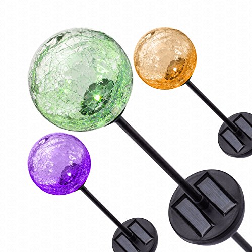 Solar Garden Stake Lights 3-Pack! - Cracked Glass LED Outdoor Patio Yard Art Statue Fairy Fountain Gnome Stained Lawn Sign Decor Ornaments - Color-changing Gazing Moonray Lamp Balls