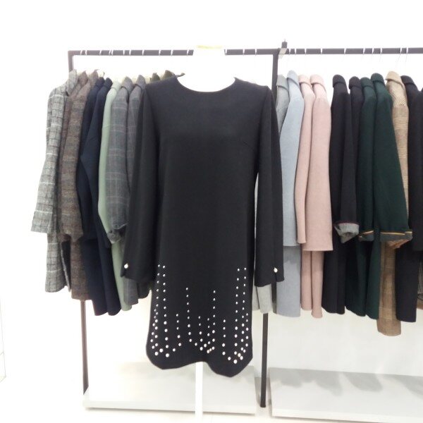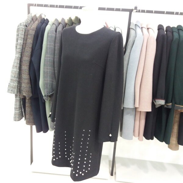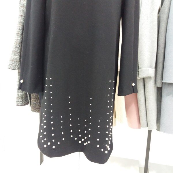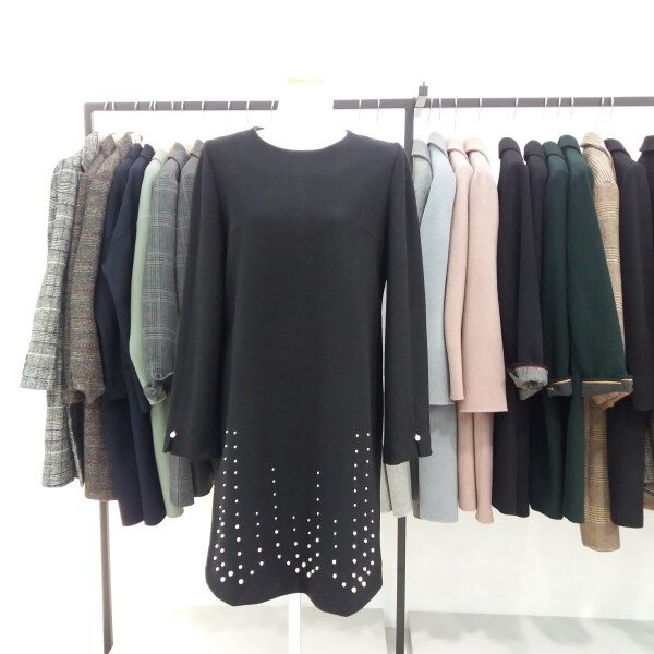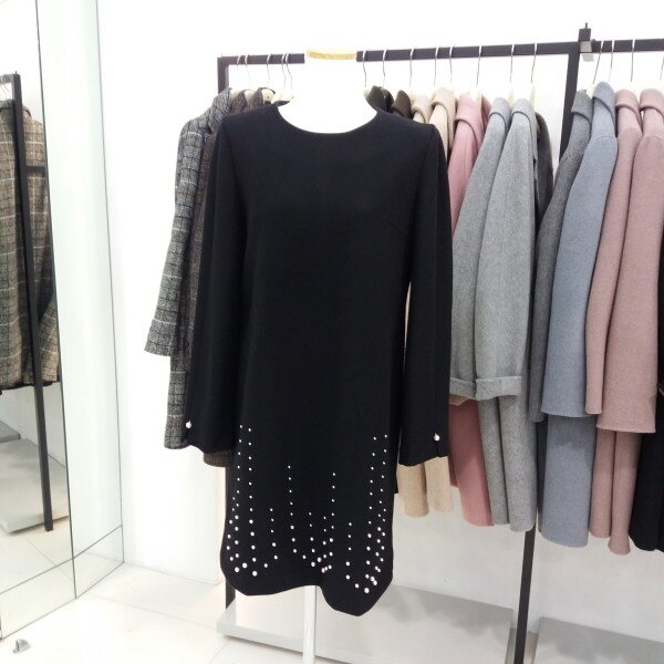 나이스크랍 일자핏으로 떨어지는 h라인 원피스입니다 진주장식이 포인트가되어 러블리하게도 보이는 원피스입니다 길이감은 무릎이 약간보이는 미니는 아니에요