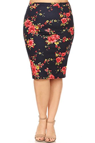 | Women's PLUS Floral Print Pencil Skirt. MADE IN USA |