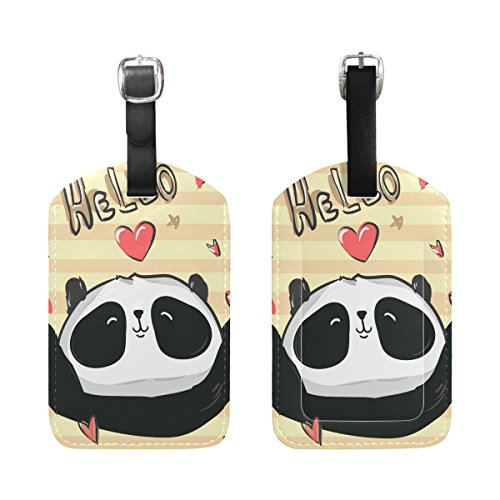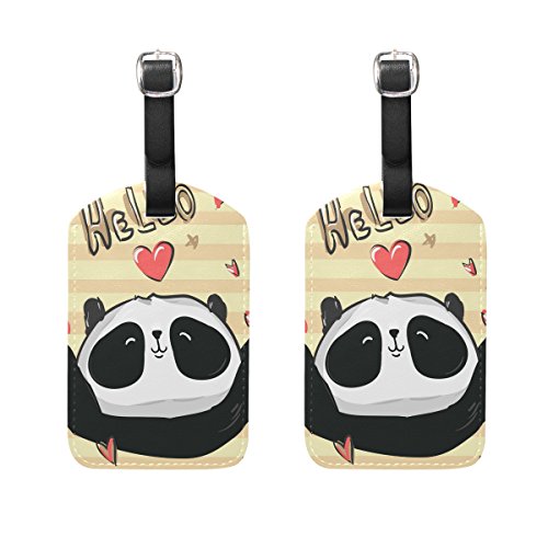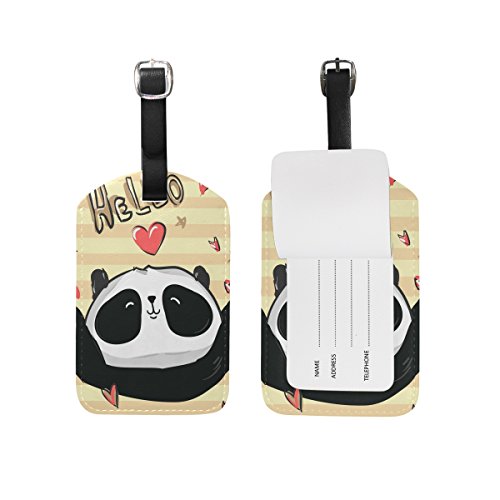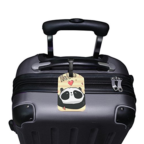 LORVIES Hand Drawn Panda Luggage Tags Travel Labels Tag Name Card Holder for Baggage Suitcase B...