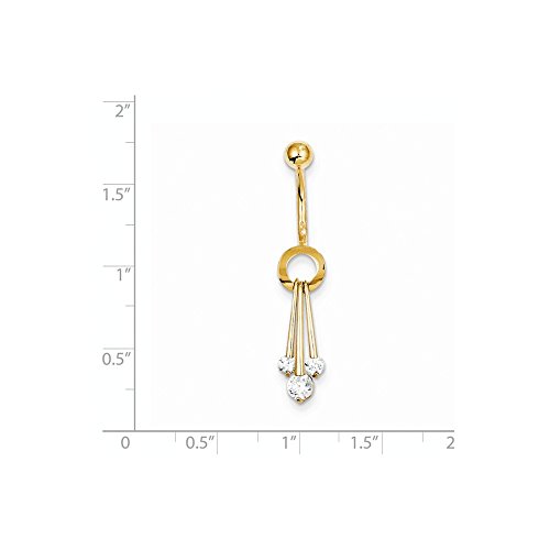 Product DescriptionSolid 10k Yellow Gold with Dangly CZ Cubic Zirconia Belly Dangle (7mm x 40mm)0