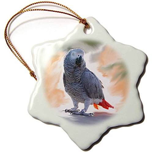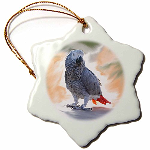 3drose orn_4030_1 African Grey Parrot Snowflake Porcelain Ornament, 3-Inch