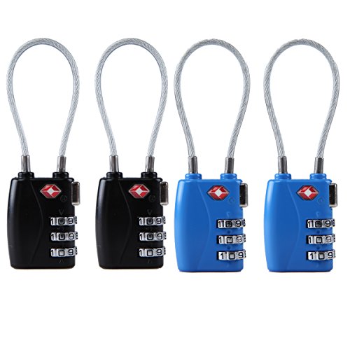 -. Title : Newtion 3 Digit Combination TSA Approved Cable Locks Lage Travel Suitcase Security Padlock 4 Pcs