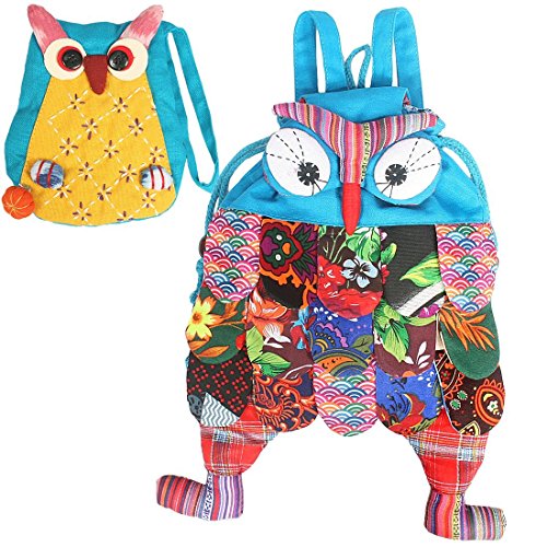 kilofly Colorful Owl Drawstring Backpack Bag + Coin Purse Pouch Combo Set