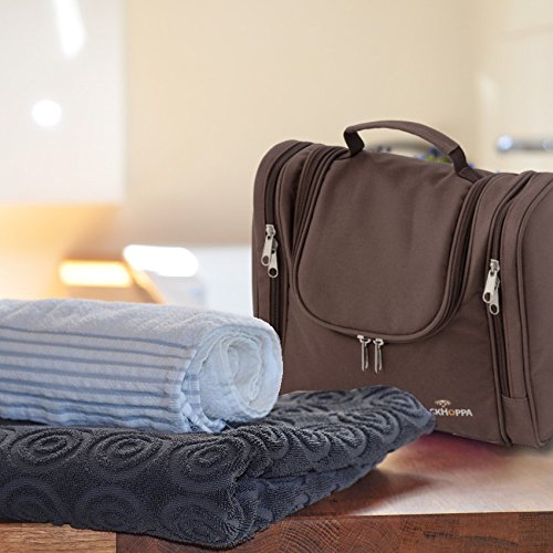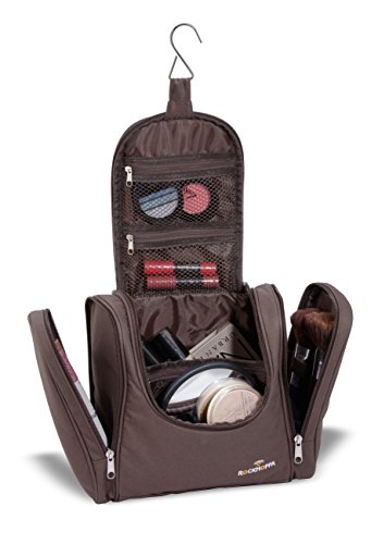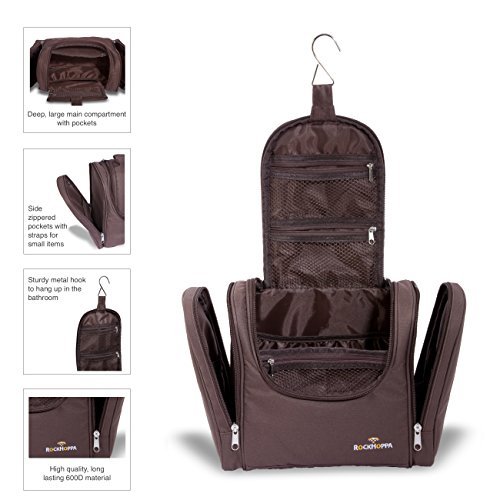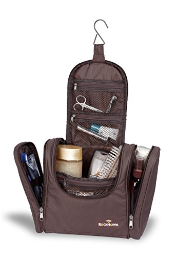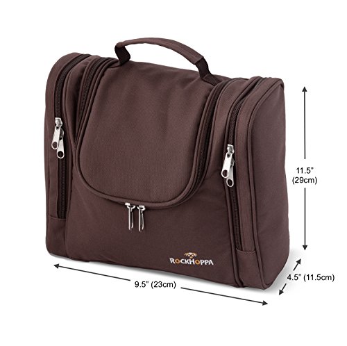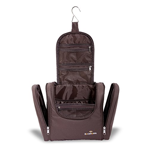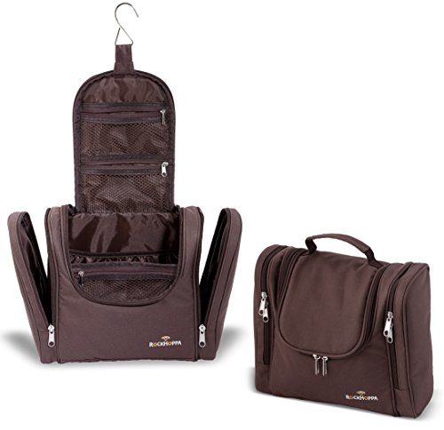 Large Brown Hanging Travel Toiletry Bag / Wash Bag by RockHoppa For Men or Women - for Cosmetics, Toiletries or Makeup