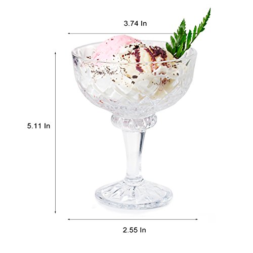 Missviya Ice cream Dessert bowls footed crtsyal set of 6 trifle / fruit/salad cocktail glass 6.66oz clear