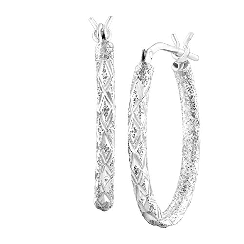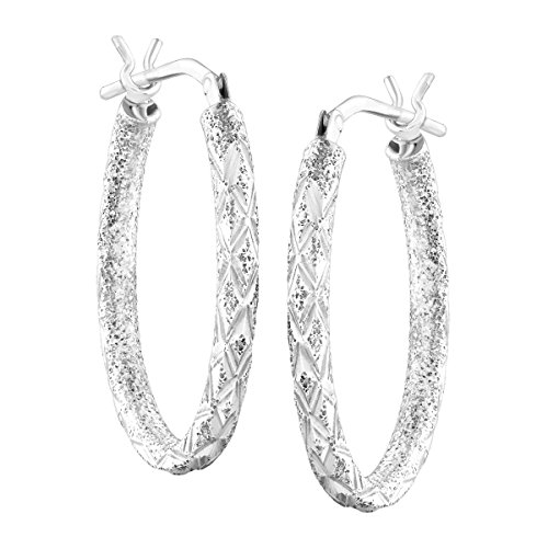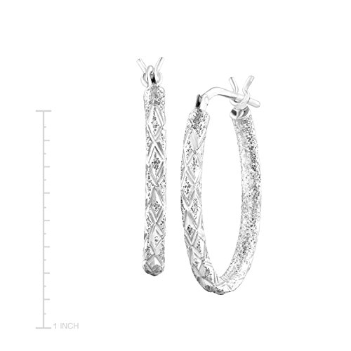 Twinkling with an etched design, these hoops are a jewelry classic designed for your everyday. These oval hoops are crafted in sterling silver. Pieces measure 1 by 1/8 inches.