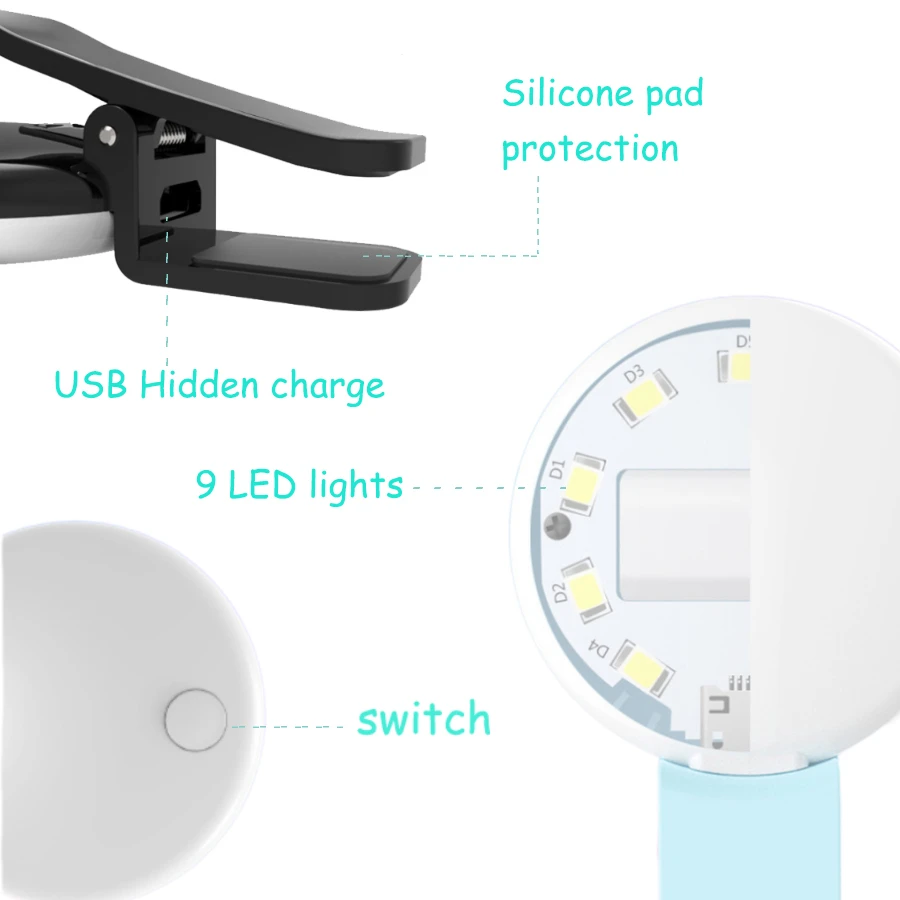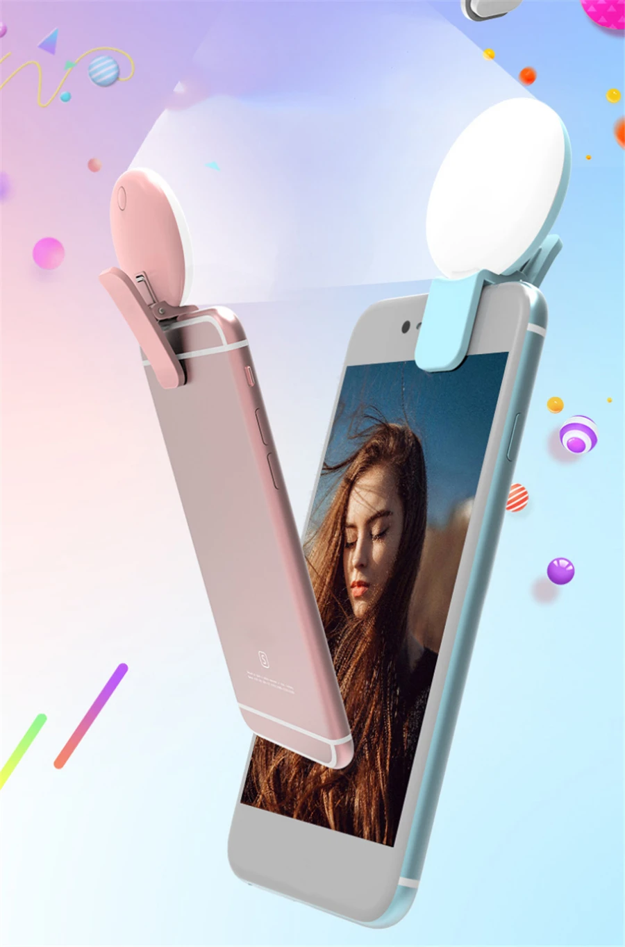 Portable Mini Phone Selfie Ring Light 9 pcs LED Flash Light USB charging For Samsung Xiaomi Huawei Android Smartphone and iPhone