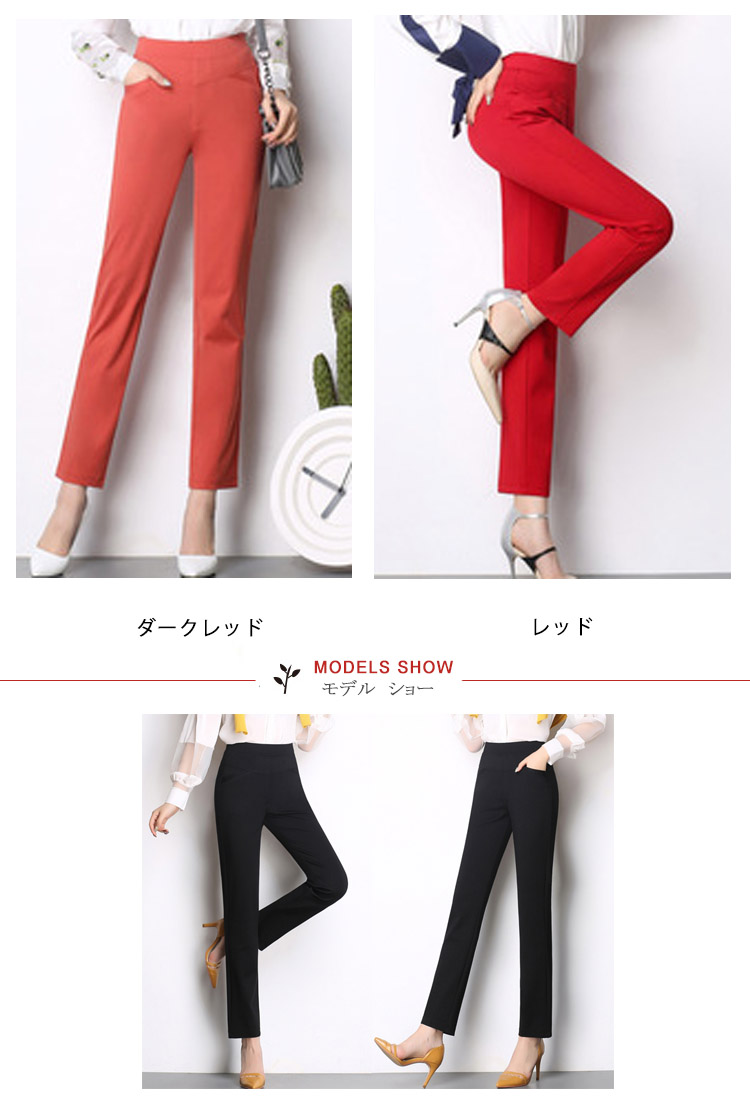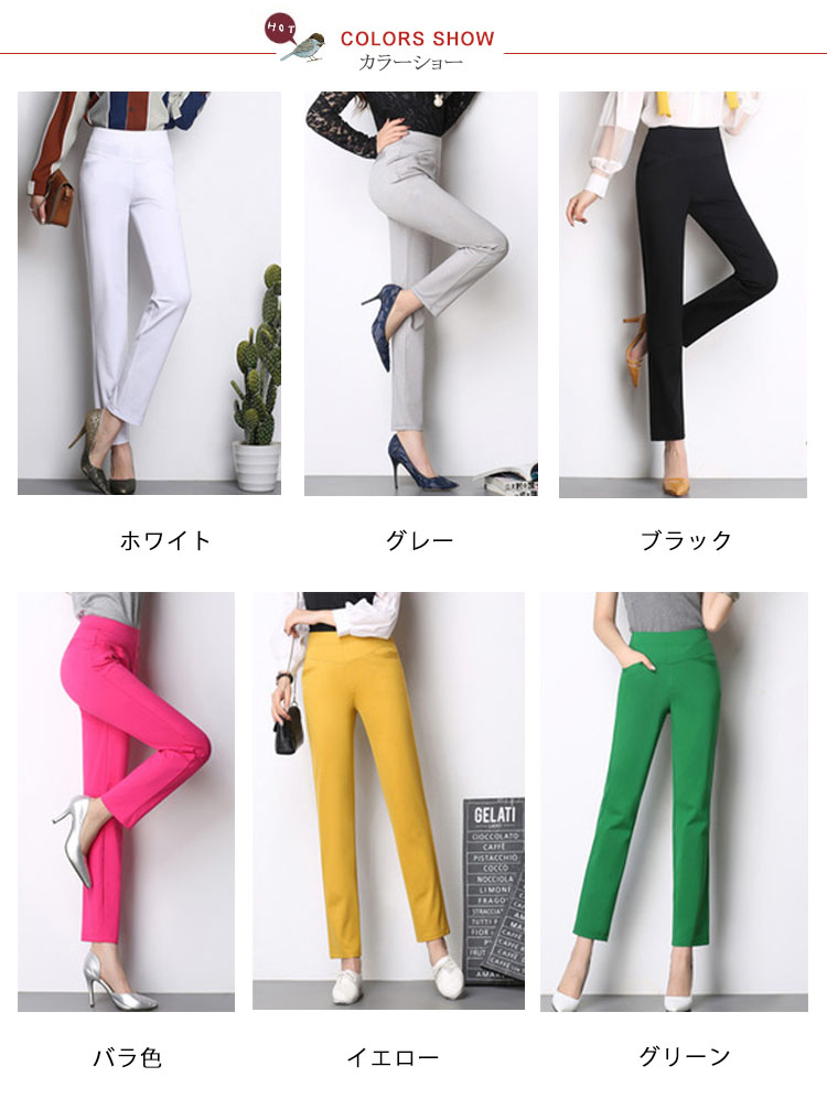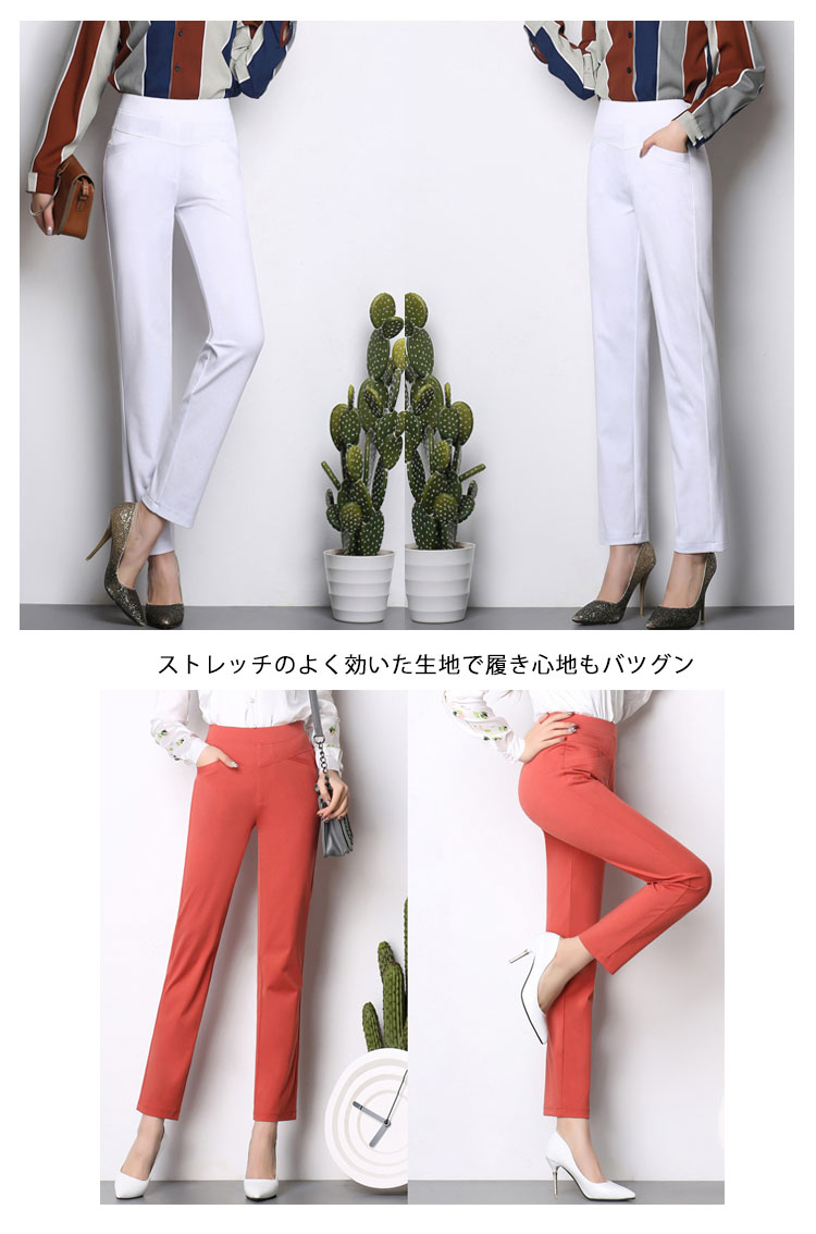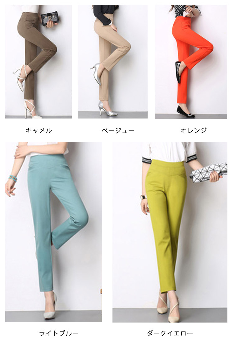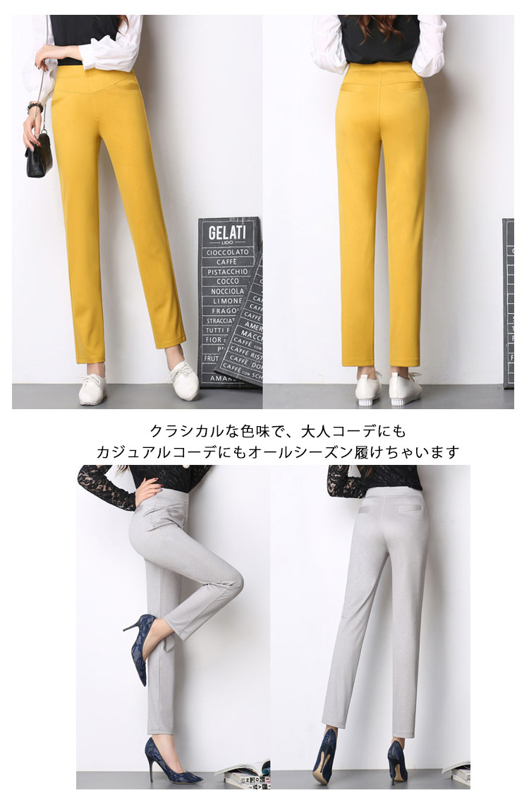 | 伸縮性のあるシンプル無地テーパードパンツストレッチのよく効いた生地で履き心地もバツグンクラシカルな色味で、大人コーデにもカジュアルコーデにもオールシーズン履けちゃいます | |