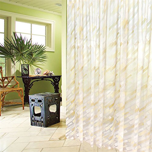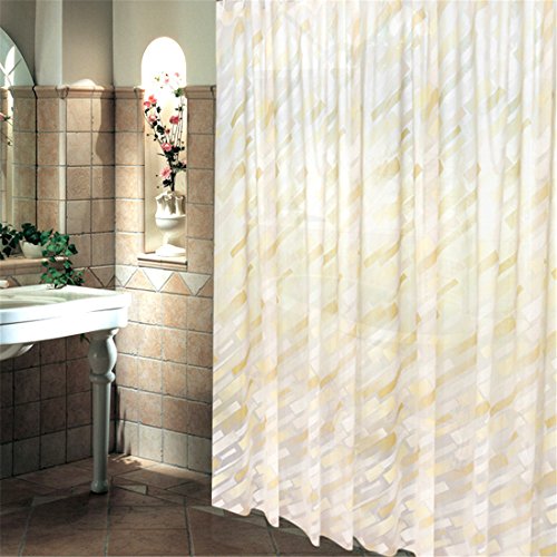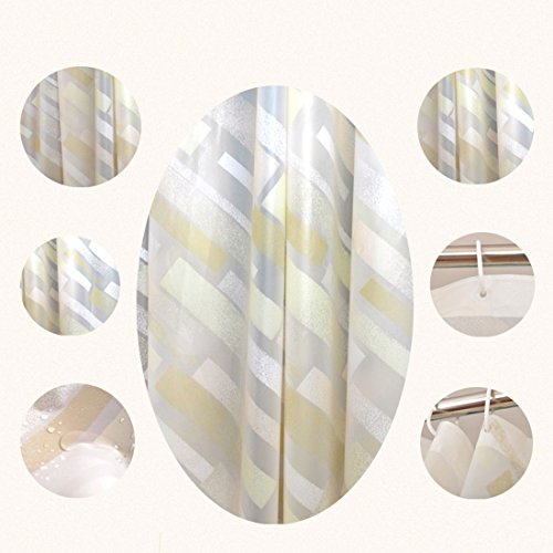 BBolive Decorative Mildew Free PEVA 5 Gauge Shower Curtain Liner Set with 12 Plastic Hooks - Waterproof 72 x 72 Inch Liner with Rust Proof Metal Grommets (Gold Stripe)