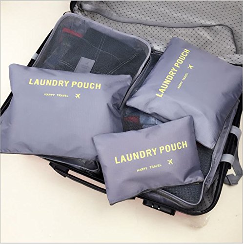 6 pcs Waterproof Packing Pouch Packing Cubes Travel Luggage Organizer Clothe Storage Bag Travel Pouch Laundry Bag (Grey) H004C