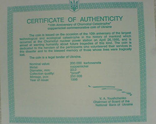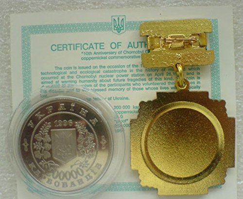 Russian CHERNOBYL LIQUIDATOR Medal & 200 000 Karbovantsiv 1996 Coin Proof