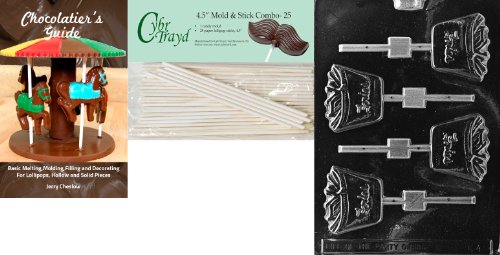 Cybrtrayd 'Fries Lolly' Kids Chocolate Candy Mold with 25 4.5-Inch Lollipop Sticks and Chocolatier's Guide