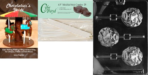 Cybrtrayd 45St25Bk-A107 'Lion Lolly' Animal Chocolate Candy Mold with 25 4.5-Inch Lollipop Sticks and Chocolatier's Guide