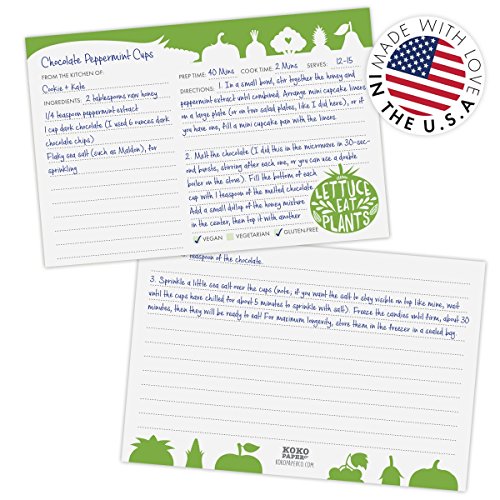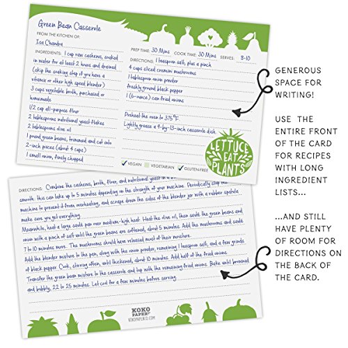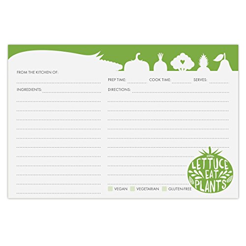 4x6 Lettuce Eat Plants Vegan Vegetarian Recipe Cards, Pack of 50. Designed with Green and White Vegetable Silhouettes.