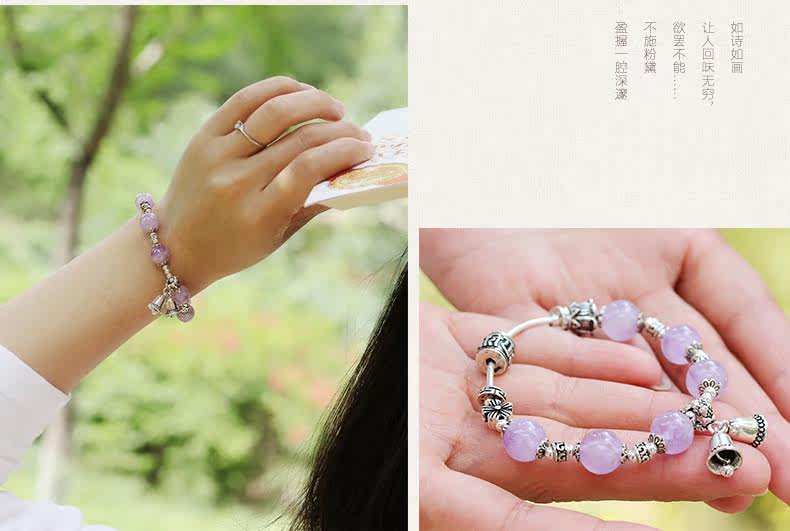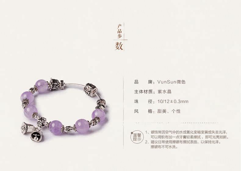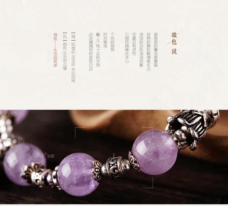 天然紫水晶手链女 单圈薰衣草紫晶手串925银 文艺复古饰品