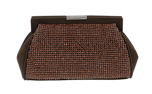 -. Title : Scheilan Brown Fabric Double Sided Crystal Paneled Clutch/Shoulder Bag