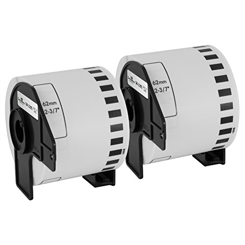 2PK Compatible Brother DK-2205 White Paper Tape - 2.4 in x 100 ft for use in QL-1050 QL-1050N QL-1060N QL-500 QL-500EC QL-550 QL-570 QL-570VM QL-580N QL-650TD QL-700 QL-710W QL-720NW