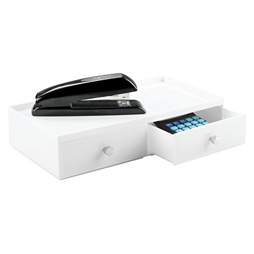 mDesign Office Supplies Desk Drawer Organizer for Staplers, Pens, Markers, Highlighters, Tape - 2 Drawer, Wide, White