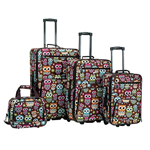 Studio : Rockland Publisher : Rockland Binding : Misc. Product Description This beautiful deluxe 4-piece expandable luggage set?is manufactured with a patented heavy duty eva-molded hi-count fabric. This set is perfect for the serious and experienced traveler.?Manufactured with the very best heavy duty polyester and pvc backing, this luggage set is designed for the traveler on the go and comes with three expandable uprights and a flight tote bag. It comes packed with features including: an inside retractable handle, ez-roll in-line skate wheels, back zippered secured pockets, top and side comfort grip handle, stability bars at the bottom to avoid tilting, and locks and keys.?Upright features include: clear in-line skate wheel system for smooth ride, push-button self-locking internally stored retractable handle system, ergonomic and comfortable padded top and side grip handles, two front full size zipper-secured pockets, and three internal organizational pockets for all your traveling needs. Each upright's interior is fully lined with a durable and elegantly imprinted lining and elegant silver pewter heavy duty industrial hardware. Carry-on flight tote bag features include: elegantly imprinted full interior lining, detachable and adjustable non-slip shoulder strap, spacious main compartment, and maximum strength industrial hardware. 19-inch carry-on upright: 19 inches high x 13 inches wide x 8 inches expandable to 10 inches deep and weighs 6 pounds, 24-inch upright: 24 inches high x 16 inches wide x 10 inches expandable to 12 inches deep and weighs 8 pounds, 28-inch upright: 28 inches high x 18 inches wide x 12 inches expandable to 14 inches deep and weighs 9 pounds. Carry-on flight tote bag: 12 inches wide x 11 inches high x 5.5 inches deep and weighs 1 pound. 0