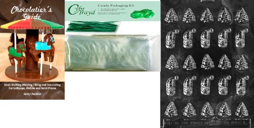 Cybrtrayd B.S. Santa/Trees Chocolate Mold with Chocolatier's Bundle of 25 Cello Bags, 25 Green Twist Ties and Chocolatier's Guide