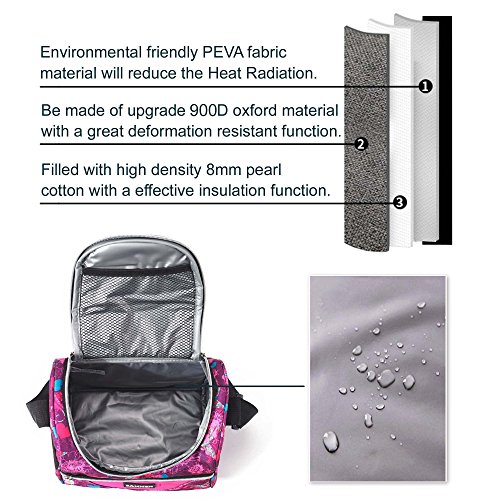 - Made with durable 600DPolyester, 5mm PE foam padding and the interior insulated PEVA lining is Eco-friendly and food safe, wipes clean easily.
