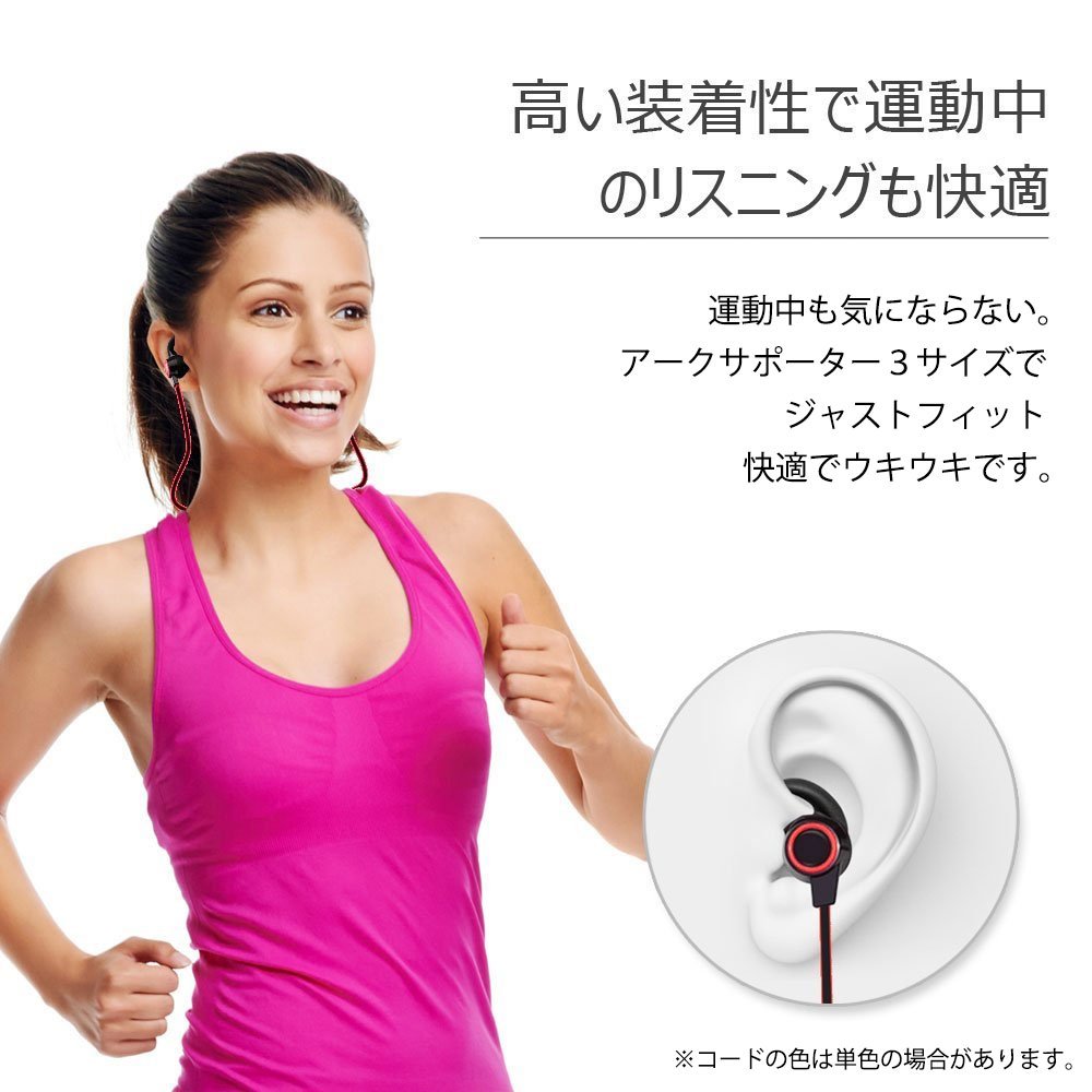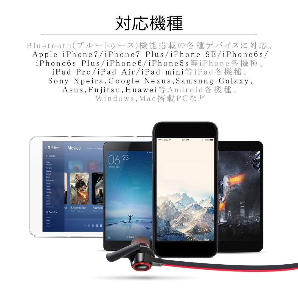 【クリアな高音質】ワイヤレスイヤホンの難点である音の遅延が小さく抑えられ、オーディオ ファイルを圧縮し音質に影響を与えることなく、CD品質のステレオサウンドを楽しめます。CVC6.0 ノイズキャンセリングテクノロジーを採用し、ハンズフリーでクリアな通話を実現出来ます。 【Bluetooth 4.1技術】最新のBluetooth 4.1技術により絡まりやすいイヤホンケーブルから解放されます。屋外作業をしても耳にしっかりフィットし、クリア、ナチュラルなサウンドを楽しめます。マグネットを内蔵しているので、使用しない時に簡単にくっつけることができます。 【IPX4防水防塵等級】ランニングなどスポーツ時の汗やワークアウト中の汗と小雨での使用に耐える防水?防汗性能を備えております。さらに屋外など風塵が多い場所でも安心してご利用いただけます。超ミニ、軽くて落ちないスポーツシーンに最適の重量感。 【高い装着性で運動中のリスニングも快適】運動中に耳とネックに感じないほどの快適さです。耳孔だけでなく耳のくぼみにフィットし、ランニング等の運動中でも落ちにくいアークサポーターを3サイズ付属しております。 【対応機種】Bluetooth(ブルートゥース)機能搭載の各種デバイスに対応。Apple iPhone7/iPhone7 Plus/iPhone SE/iPhone6s/iPhone6s Plus/iPhone6/iPhone5s等iPhone各機種、iPad Pro/iPad Air/iPad mini等iPad各機種、Sony Xpeira,Google Nexus,Samsung Galaxy,Asus,Fujitsu,Huawei等Android各機種、