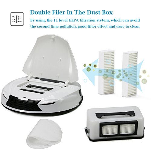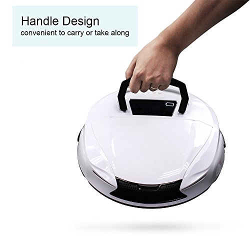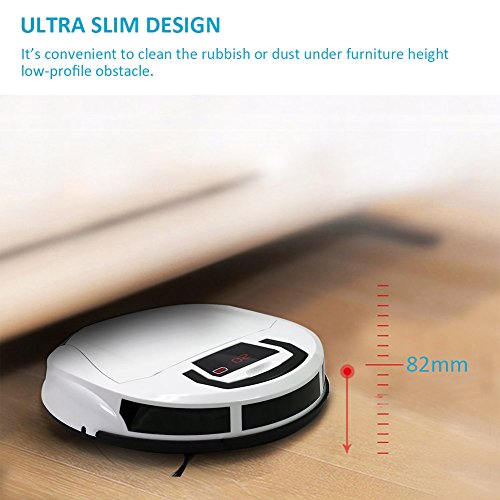 HANDLE & SLIM DESIGN -- HILI Robot Vacuum Cleaner designed with portable handle, easy to carry and move. The ultra slim design convenient to clean the rubbish or dust under furniture height of 82mm low-profile obstacle.