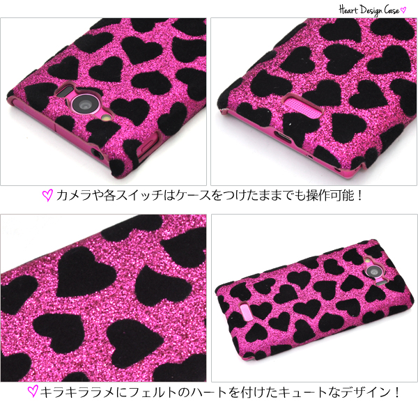 可愛いハートデザインのAQUOS PHONE SERIE mini SHL24用ハートデザインケース! キラキララメにフェルトのハートを付けたキュートなケースです。 もちろん、衝撃やキズ、埃などからAQUOS PHONE SERIE mini SHL24をしっかりと守ります。 カメラ、イヤホンや各種ボタンなどをケースに入れたまま操作可能です。 ※AQUOS PHONE SERIE mini SHL24は付属しません。 ※ライセンス商品ではありません。 |
