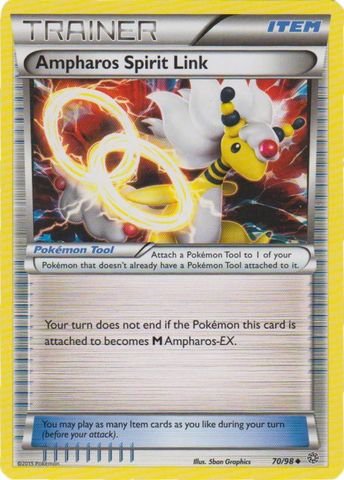 -. Binding : Toy -. Brand : Pokémon -. Edition : Ancient Origins -. Feature : A single individual card from the Pokemon trading and collectible card game (TCG/CCG). / This is of Uncommon rarity. / From the Ancient Origins set. -. IsAdultProduct : 0 -. ItemPartNumber : 70/98 -. Label : Pokemon USA, Inc. -. Manufacturer : Pokemon USA, Inc. -. PackageQuantity : 1 -. ProductGroup : Toy -. ProductTypeName : TOYS_AND_GAMES -. Publisher : Pokemon USA, Inc. -. Studio : Pokemon USA, Inc. -. Title : Pokemon - Ampharos Spirit Link (70/98) - Ancient Origins