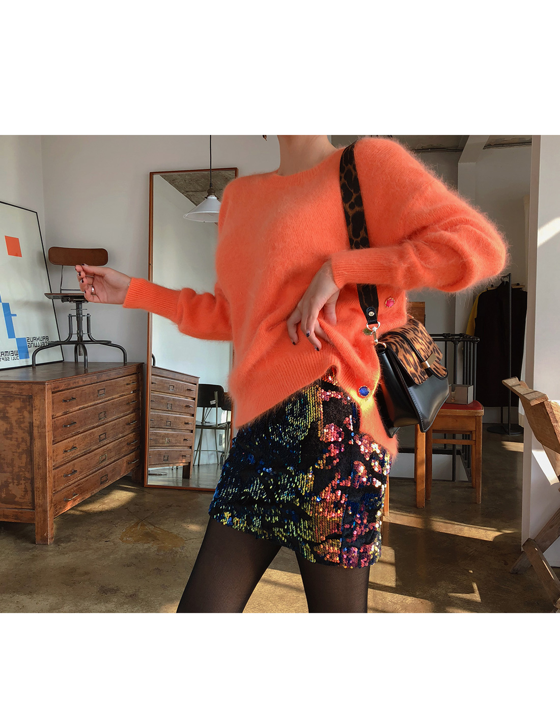 모델처럼 스커트와 매치하면 여성스러운 룩을 연출하실 수 있으며