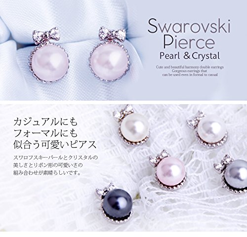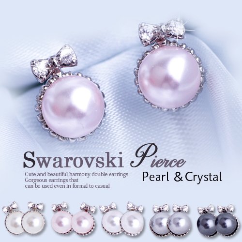 BN283E 【스와로브스키 리본 피어스(귀걸이)】레이디스 스와로브스키 swarovski pierce stone 피어스(귀걸이) 리본