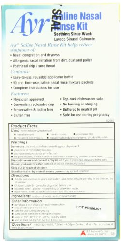 -. Title : Ayr Saline Nasal Rinse Kit Soothing Sinus Wash, 50-Count Saline Nasal Rinse Mixture Packets Plus Applicator Bottle