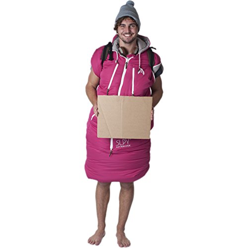 Studio : SLPY Publisher : SLPY Product Description The Mens Original Sleepy is a wearable sleeping bag you can sleep, wear and explore in. Ideal for camping, festivals, backpacking, travelling, couchsurfing or anytime you need the ability to keep warm and mobile. Constructed with YKK Zips, a Thermolite filling and a soft touch, textured pongee outer the Original Sleepy uses the best materials to provide a technical sleeping bag able to withstand temperatures down to -15 degrees. The Original Sleepy combines the best of fashion, action sports and technical outerwear to provide camping cool. With a central two way zip getting in and out the Original Sleepy is easy. Opening the shoulder zips allows the arms to come out each side and the bottom 'Zipcinch' system allows the bag to be opened at the bottom and brought up to the waist to enable you to walk around in comfort. Zip chest pockets with internal media eyelet, beard guard, padded waist pockets, embroidered logos and branded leather tags provide that quality feel that will make you fall in love with your Sleepy. Why buy a normal sleeping bag? Temperature Guide: Comfort: 5 degrees, Limit: -5 degrees, Extreme: -15 degrees Fit Guide: Medium fits up to 5Ft 11 inches tall, Large fits up to 6Ft 6 inches tall Medium bag length (excluding hood) - 185cm Medium chest width - 70cm Large bag length (excluding hood) - 208 cm Large chest width - 85cm If you like a lot of room in your normal sleeping bag or are a larger build then choose the Large even if you are a medium fit in terms of height. Compression sack dimensions: Medium is 34cm long x 20cm diameter, Large is 39cm long x 22cm diameter 0