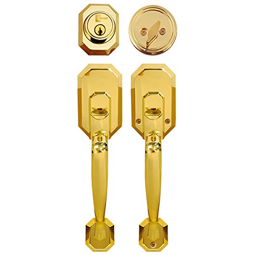 -. Title : Polished Brass Finish Door Lock Lever Handle "Constructor" Cerberus Entry Hand Set