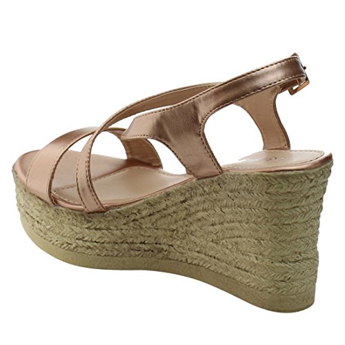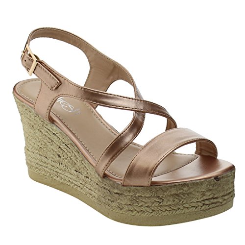 Product Description Create a signature style of your own in the wedge sandals. Design with strappy design, single band, ankle strap with buckle closure, platform with high wedge heel. 0