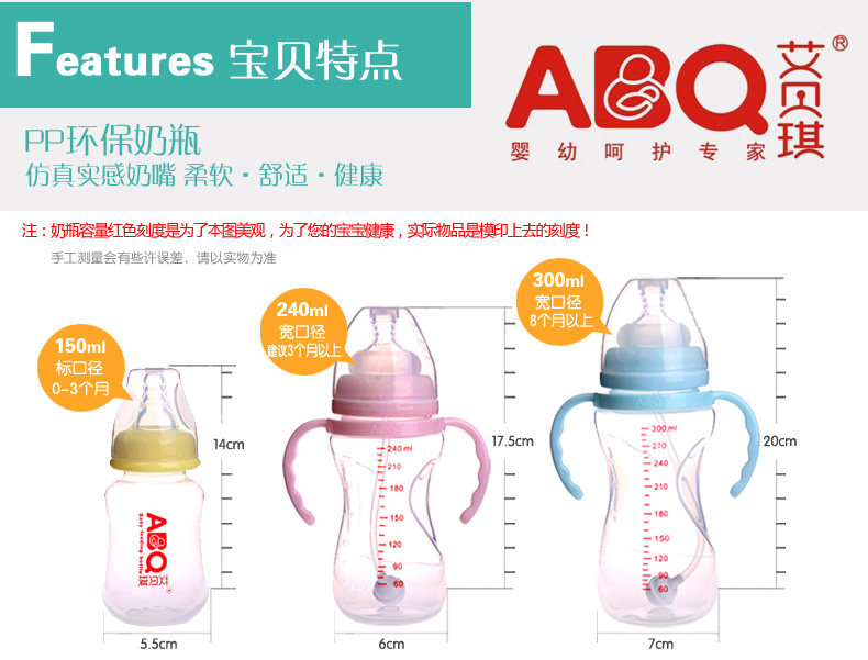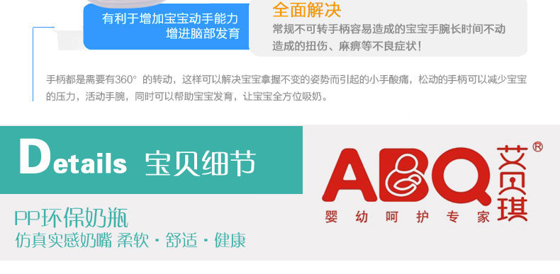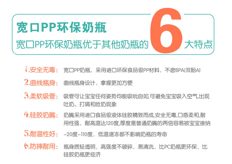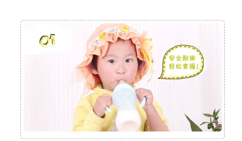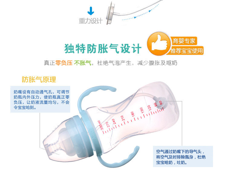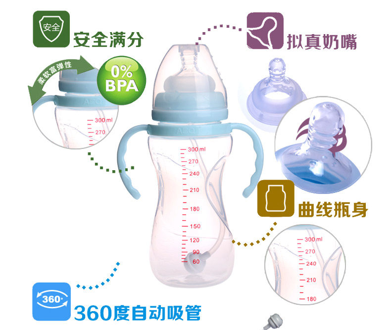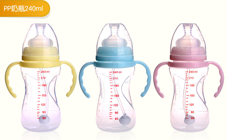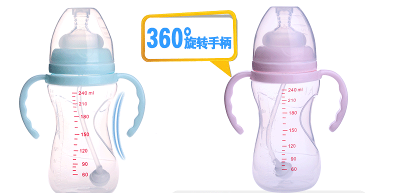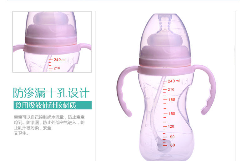 奶瓶宽口径防胀气防摔带吸管手柄pp新生婴儿全硅胶奶嘴包