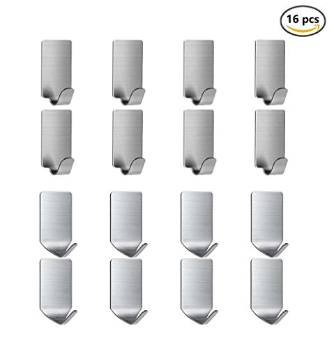 3M Self Adhesive Hooks, Best Heavy Duty 3M Wall Hooks Stainless Steel Ultra Strong Waterproof Hanger for Bathroom, Home, Kitchen, Robe, Coat, Towel, Keys, Bags( 16 pcs )