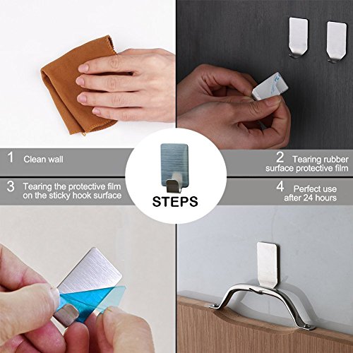 - Easy to Use: Just peel off the cover starting from the bulge, then put the hook on smooth surface. No nails or screws needed, so we do not need to damage the surface.