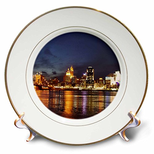 3dRose cp_61681_1 Cincinnati Skyline at Night Porcelain Plate, 8-Inch