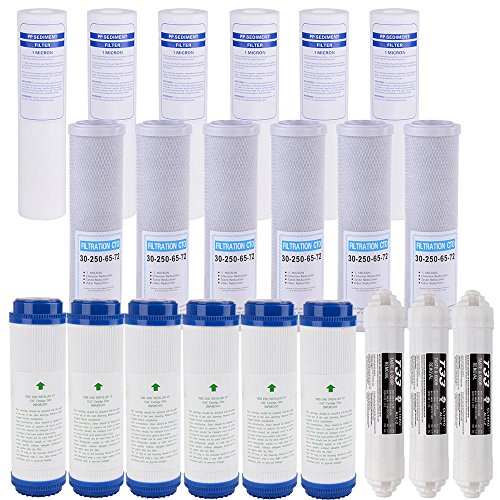 -. Feature : 21pcs Replacement Filters for Standard Size Reverse Osmosis System / 6 x Polypropylene Sediment Filters / 6 x GAC Coconut Shell Carbon Filters / 6 x CTO Coconut Shell Carbon Block Filters / 3 x InlineT33 GAC Coconut Shell Carbon Filters (T33 GAC Coconut Shell Carbon Filter only fit for the filter with 2" Quick connect fittings)
