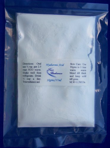 -. Title : HYALURONIC ACID POWDER for skin or to take orally by True Radiance. 100% PURE 10GMS/100 days worth. Or make your own Hyalronic serum pure and fresh. Hyaluronic acid is a Dietary Supplement used for joint health (joint pain) and skin health.