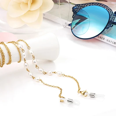 무료 배송 클리어 파란색 안경 코드 읽기 유리 넥 스트랩 안경 천연 진주 홀더 코드 안경 체인