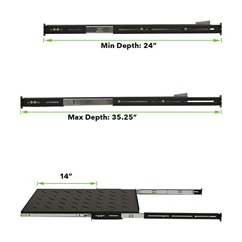 Navepoint Sliding Rack Vented Server Shelf 1U 19" 4 Post Rack Mount Adjustable 24" - 35"