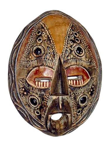 NOVICA Decorative Sese Wood and Brass Mask, Brown, 'Be Happy'