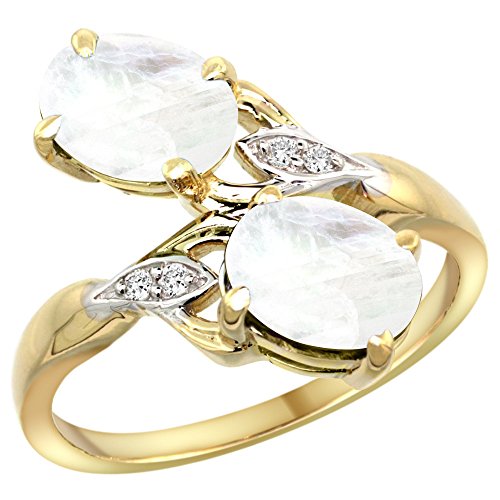 -. Title : 10K Yellow Gold Diamond Natural Rainbow Moonstone 2-stone Ring Oval 8x6mm, sizes 5 - 10