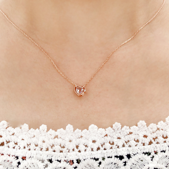 체인길이(기본+꼬리) : 약39CM+약5CM(꼬리체인) / 하트모티브 1.4CM (하트큐빅 0.5CM+ 큐빅 0.1CM 별0.2CM)