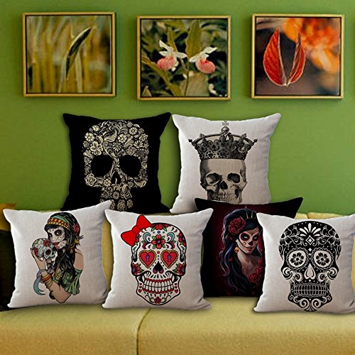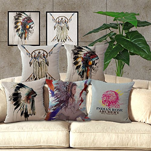 Indian Skull Cushion Cover ChezMax Cotton Linen Throw Pillow Case Sham Square Pillowcase For Class Study Room Coffee House Decor Decoration