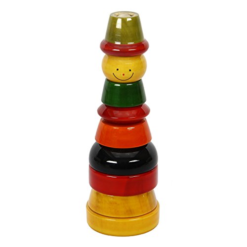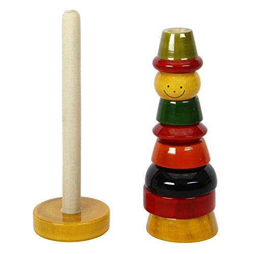 Wooden multicolored stacking toy with five brightly colored rings. Beautifully crafted and polished, this classic developmental toy will be perfect to engage your kid's curiosity.